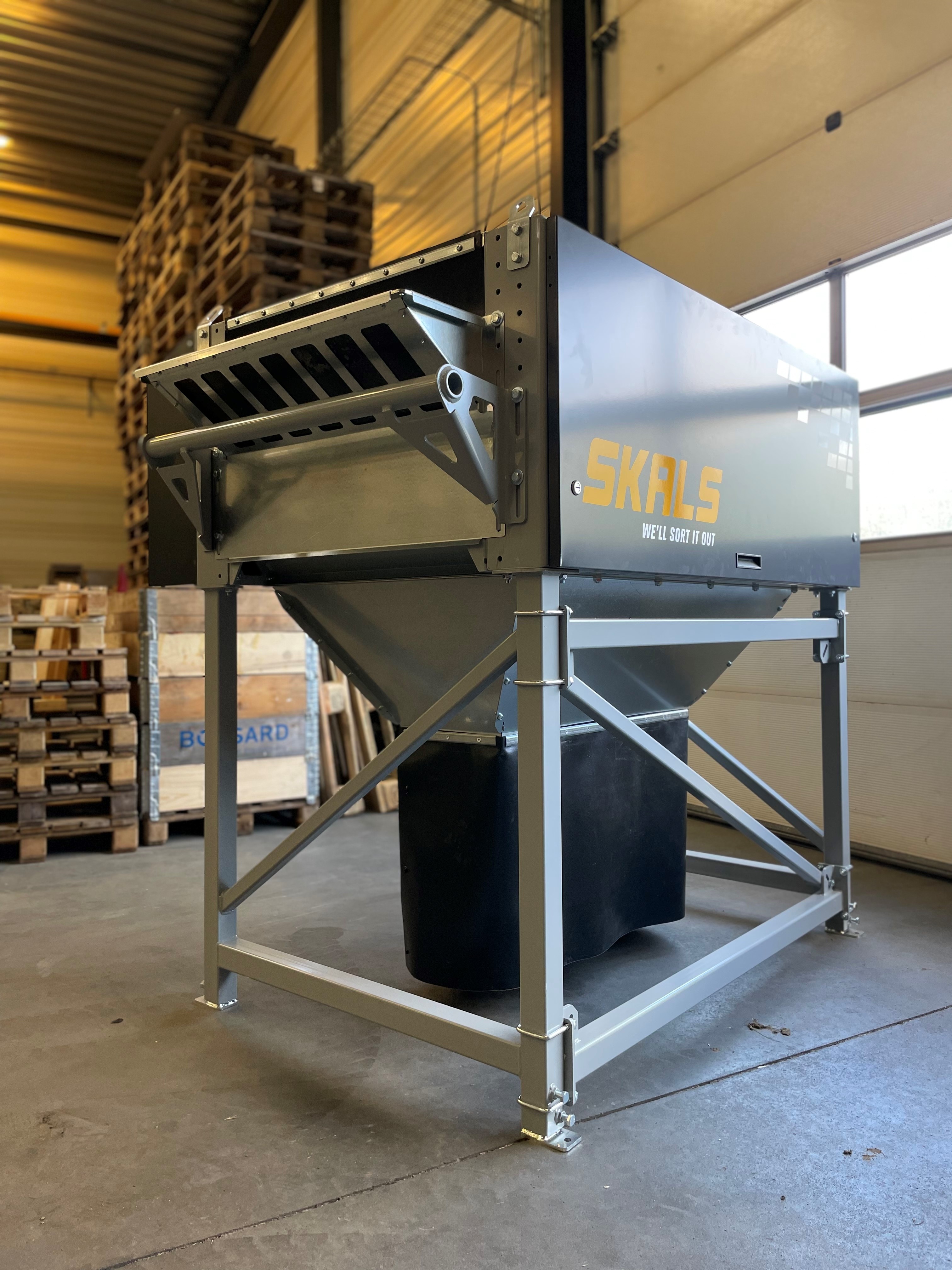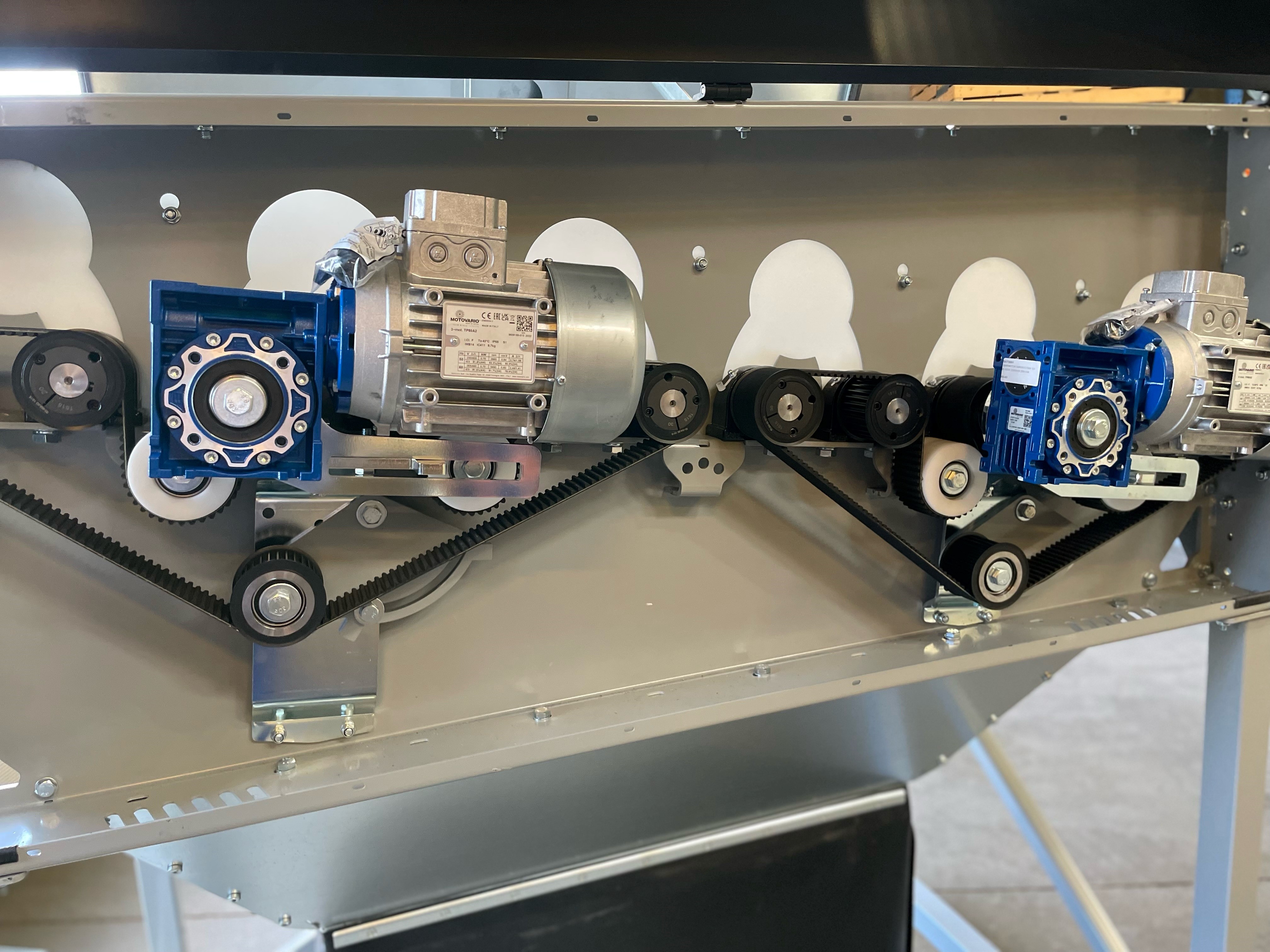 - Last roller is mounted w. rubber discs for gentle outflow