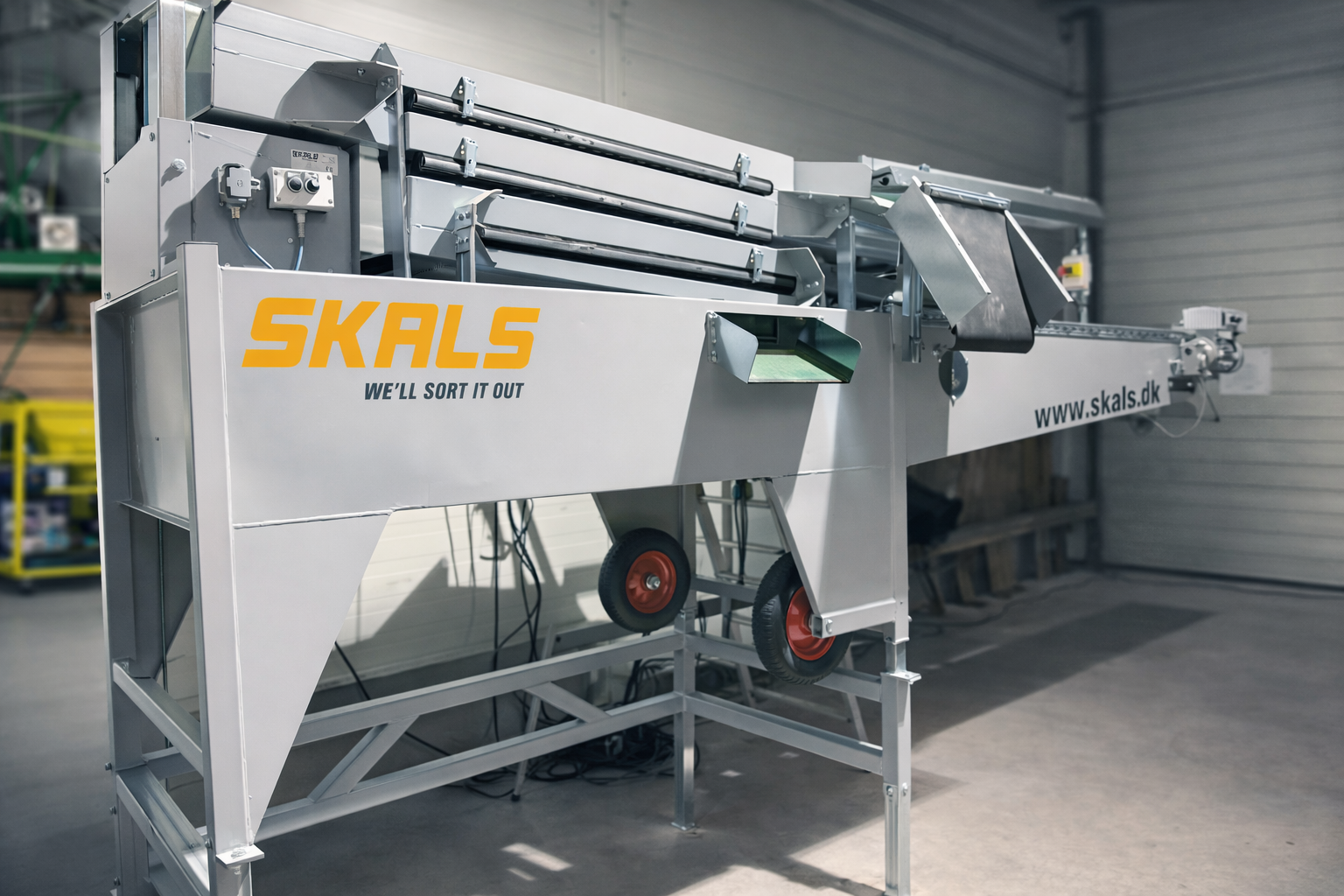 Driftsikker sorterer. Kompakt kartoffelsorterer med en kapacitet på 3-4 tons i timen. Nu med opgraderede gummisolde.